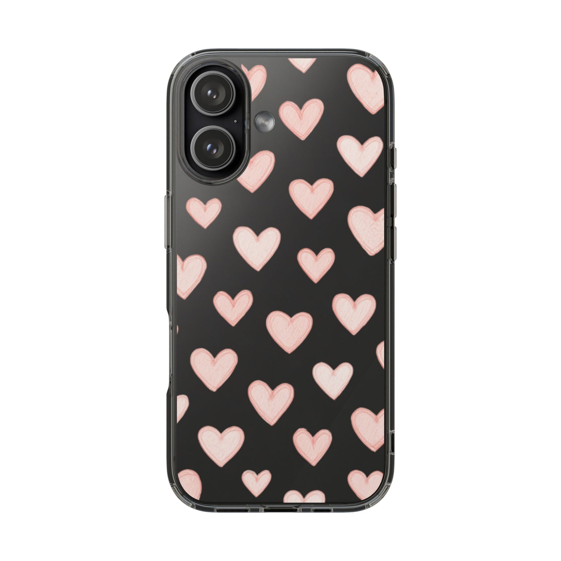 This phone case features pink hearts, giving a cute and playful vibe. Perfect for those who love adding a touch of whimsy to their everyday essentials. Ideal for Valentine's Day gifts, birthdays, or simply for adding a pop of color to your phone.